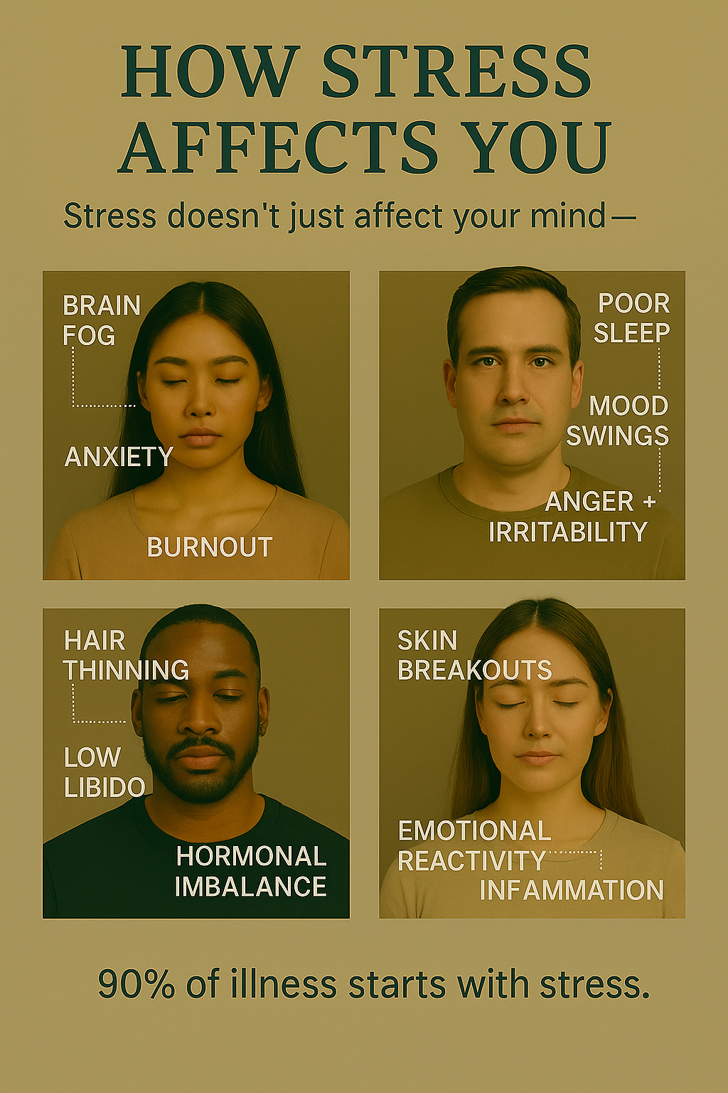 Stress affects more than your mood—over 90% of doctor visits are linked to stress.