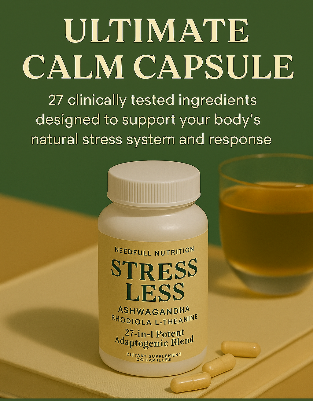 This plant-based powerhouse is clinically formulated to calm cortisol—the root cause of stress, anxiety, and burnout—naturally, with no crashes or harsh side effects.